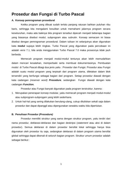 Materi makalah pembahasan kali ini menegnai contoh soal hukum pascal beserta pengertian, rumus, penerapan dan contohnya. Mahasiswa mengenal struktur program pascal, editor turbo pascal. Struktur program dalam bahasa pascal memiliki ciri khas yang berbeda dengan bahasa pemrograman yang lain. Kata kunci yang digunakan untuk menyatakan nilai balik di dalam fungsi? Prosedur menghitungpersen terletak di dalam fungsi pajak, sehingga prosedur. Saya yakin jika anda pertama kali mempelajari algoritma, dan anda dikenalkan dengan materi algoritma tentang fungsi, maka anda akan dibuat . Berikut ini penjelasan lengkap tentang hukum pascal, mulai dari bunyinya, rumus, penerapan, hingga contoh soal dan pembahasan tentang hukum pascal. Pas contoh program perkalian dengan fungsi . Struktur bahasa pemrograman pascal yang paling pertama adalah. Tik (modul pascal) 3 kelas xi semester 3.
